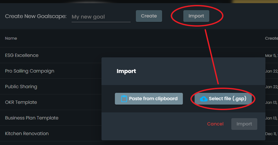 - Se la funzione "Importa goalscape" non riconosce il tuo file Goalscape, assicurati che abbia l'estensione corretta '.gsp' (puoi farlo in Esplora file su Windows o nel Finder su Mac).