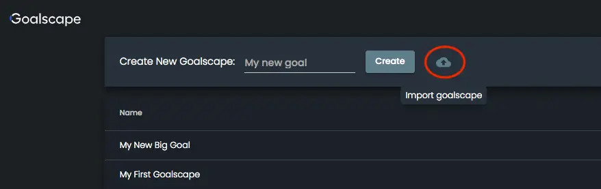 Per usarne una come template per la tua goalscape, scaricala (clicca il pulsante Download e seleziona "Goalscape Project"), salva il file .gsp sul tuo disco, poi accedi a Goalscape e carica il file .gsp con il pulsante "Importa goalscape" nella schermata Home:
